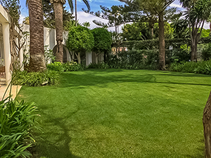 Mantenimiento del césped con la correcta secuencia de tareas según la época y exigencias del mismo, siegas, aportes de sustratos y enmiendas, aplicación de fertilizantes y productos fitosanitarios.